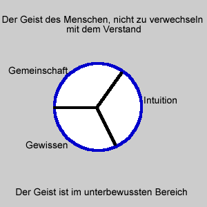 das Gewissen ist ein Teil deines Geistes. Der Geist des wiedergeborenen Christen ist eins mit dem Geist Gottes und wurde bei der Wiedergeburt lebendig gemacht. Der Geist des Menschen hat drei Haupteile oder Funktionen: